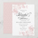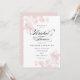 Denna bröllopsinbjudan har vintage botaniska blommor i rosablommig rosa som ramar in den eleganta kalligrafitypen i motsatta hörn på framsidan av designen.