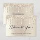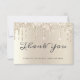 Tacka era bröllopsgäster med stil med detta eleganta tackkort. Denna glamourösa designmall har orden "Tack" i modernt skrivsätt på en bakgrund av elfenbensfärgat glitter som dropar. Baksidan av kortet har ett anpassat tackmeddelande och signatur. Designad av Susan Coffey.