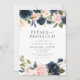 Denna bröllopsinbjudan med kronblad och prosecco har eleganta vattenfärgade rosafärgade och marinblå blommor med en enkel och tidlös typsnittskombination. Det är den perfekta inbjudan för att skapa en trevlig stämning och kan modifieras för att passa valfritt evenemang. Behåll baksidan rosafärgad eller lägg till ett eget foto på baksidan för en personlig touch.