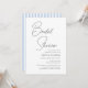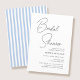 Fira den blivande bruden med en elegant bröllopsfestinbjudan i ledig stil. Med chic typografi och rena, moderna ränder ger denna design en fräsch, minimalistisk touch till din speciella fest. Anpassa enkelt mallen med dina evenemangsuppgifter, inklusive brudens namn, datum, tid, plats och RSVP-information. En anpassad design med fullt redigerbar text så att du kan skapa en skräddarsydd inbjudan. Mångsidig och tidlös, denna inbjudan kompletterar en mängd olika bröllopsfester, från brunch och bubbel till en intim sammankomst hemma - perfekt för vår- och sommarfiranden. Tryckfärger: pastellblå, vit och mörkgrå text, eller anpassa färgerna för att passa din plan. Tillgänglig som tryckt inb
