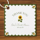 Ge dina bröllopspresentfavoriter en personlig touch med denna rustika solros-tacktagg. Med en djärv djupgrön kant, en scalloperad vit mittdel och en glad solrosillustration är denna tagg den perfekta avslutningen för en höstbröllopsfest eller en landlig fest. Anpassa namnet och datumet för att göra det unikt. Perfekt för att knytas runt tvål, ljus eller murar—dina gäster kommer att älska den soliga detaljen!