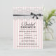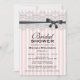 Elegant, franskinspirerad design är perfekt för att fira den vackra blivande bruden på hennes bröllopsfest med en feminin touch. Vit spets och en svart bandkant är satta på en söt rosa och vit randig bakgrund, med formell typografi.