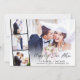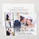 Elegant elopement eller privat bröllopsinbjudan och mottagning med er bröllopsdagsfoto överlagrat med en remsa av tre mindre fyrkantiga foton och "Lyckliga Evigt" i en stilren modern handskrift. Lägg till era förnamn, bröllopsdatum och plats i en enkel typografi. På baksidan kan ni anpassa er äktenskapliga inbjudan och mottagning samt lägga till era namn i en signerliknande handskrift.