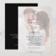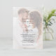 Gör din bröllopsdag oförglömlig med vårt eleganta svart-vita monogram bröllopsinbjudan. Med en sofistikerad svart-vit design visar denna inbjudan en anpassad monogramlogotyp och elegant typsnitt, perfekt för exklusiva evenemang. Vår moderna design har en falsk vellumöverdrag som vackert framhäver och subtilt mjukar upp ditt foto på framsidan. Detta unika designelement är ett digitalt lager som skapar den sofistikerade looken av vellum utan att behöva fysiskt papper, vilket ger en elegant och tidlös touch till dina inbjudningar. Baksidan innehåller en QR-kod till din bröllopswebbplats och RSVP-information i vitt på en sofistikerad svart bakgrund. Kontakta designern för matchande produkter och skapa en sammanhängande look