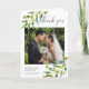 Elegant tackkort med färska ängsblad som ramar in ditt favoritbröllopsfoto, namn och speciella datum. Du kan anpassa tackmeddelandet på insidan. Ett perfekt sätt att säga tack!