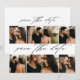 Elegant bröllopsfotocollage Spara datum med vacker script kalligrafi på framsidan. Baksidan har parets namn och detaljer om bröllopet och webbplats. Klicka på redigeringsknappen för att anpassa denna design.