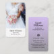 Eleganta visitkort för fotografer visar ditt bästa arbete i ett klassiskt vertikalt format med modern och klassisk typografi. Anpassa baksidan med din fullständiga kontaktinformation i den lila grå gradienten Skicka meddelande om du behöver hjälp eller har några speciella önskemål.