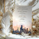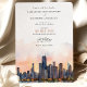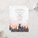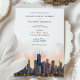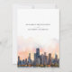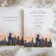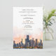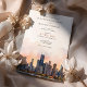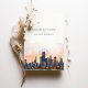 Meddela om din kommande bröllopsdag med denna sofistikerade inbjudan som visar den ikoniska siluetten av Chicago, Illinois. Kortet visar en fantastisk akvarellillustration av Chicagos berömda arkitektur, vackert avbildad med de lugna nyanserna av gryning eller skymning. De eleganta serif- och scripttypsnitten i varmt terrakotta och dämpat guld ger en touch av modern chic. Perfekt för par som planerar ett modernt urbant bröllop, kombinerar denna inbjudan charmen hos Chicagos siluett med en förfinad konstnärlig elegans.
