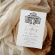 En unik chic ladugårdsillustration i en hösttema med gula lampor och orangea pumpor. Det är en elegant rustik design med modern kalligrafi och typsnitt. Baksidan har parets namn och webbadress (valfritt).