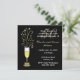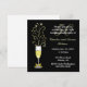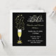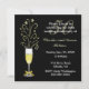 Elegant anpassad bröllopsjubileumsfestinbjudan, utförd i svart och guld. Grafik av ett festligt glas champagne dekorerat med en guldtonad båge på skaftet och gnistor som kommer ut ur toppen, sitter på vänster sida av inbjudan. En solid svart bakgrund med vit och guldtonad text är helt anpassningsbar för att passa dina festbehov. Bra för födelsedagsfester också.