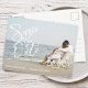 Grattis på ditt förlovning! Datum att spara-kort är det första stora steget i bröllopsplaneringen! Denna design har fullständigt fotografi och modern typsnitts typografi.