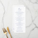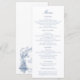Skapa en förtrollande stämning för din bröllopsfest med detta romantiska menykort. Det invecklade blå toile-mönstret