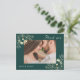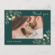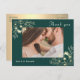 Fira din speciella dag med detta fantastiska vintage bohemiska bröllskort tack. Med eleganta smaragdgröna nyanser, förgyllda blomaccent och ett vackert fotoutrymme på framsidan, ger denna lyxdesign en touch av sofistikering till ditt hjärtliga meddelande. Anpassa baksidan med din egen personliga text för att skapa en minnesvärd souvenir för dina gäster. Perfekt för en tidlös och elegant bröllopsstil.