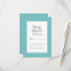 Aqua bröllop RSVP detaljuppslag kortdesign har en vacker chic kant i chic trendig aqua som inkluderar en elegant petit vit kant. Kalligrafi och skrivstil är kolgrå på vit bakgrund. En modern mall för datum och år kompletterar den unika kalligrafidesignen. Baksidan av kortet är enfärgat aqua.