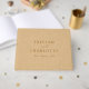 Elegant antique bronze serif typografi på gräddbrunt faux linen. Skölj kommentarerna och känslorna från vänner och familj, som bevarats i er vackert utarbetade gäst bok i bröllop. Enkel elegans.