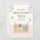 Celebrate a memorable baby shower with this beautifully designed invitation card featuring a soft brown and white theme, accented by green foliage and delicate footprints. The charming crib illustration adds a cozy, welcoming touch, perfect for inviting guests to an elegant baby shower.