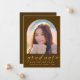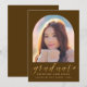 Skicka ditt familj och dina vänner ett unikt personlig 2025-kort för studenten-meddelande till wowen. Den här moderna malldesignen innehåller ett foto i en båge ram för att du ska kunna byta till en egen mot en brun bakgrund. Under fotona finns "Student" i ord i modern handskriven stil för faux guld och ditt namn, högskola och år för att anpassa dig. Designad av Susan Coffey.