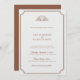 Den här mycket skickliga inbjudan fångar traditionens och den sofistikerade timelens skönhet och symboliserar den ära och klass som kommer att definiera din speciella dag. De varma bruna tonerna, kompletterade med den mjuka krumbakgrunden, skapar en förfinad palett som exuderar elegans. Det klassiska skriptteckensnittet lägger till en liten bit romantik och anger scenen för ett firande som är både traditionellt och oförglömligt.