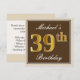 Elegant, Brown, Faux Guld 39:e födelsedagen + Namn Inbjudningar