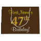 Den här enkla presentsäcksdesignen i eleganten innehåller ett personlig som "FirstName's 47:e födelsedagen!" (med "47:e" som har ett utseende som liknar guld- och faux-/imitationsfärgen) på en brun färgad. Namn är i skriptliknande gult-färgad och kan anpassas. En sådan här personlig-födelsedagspressning skulle kanske kunna användas när en present eller gåva till någon som firar sin 40-sjunde födelsedag är ge. [~Z0000262]