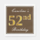 Den här enkla och elegant pappra napkin-designen innehåller ett meddelande som "Caroline's 52:a födelsedagen" (med "52:a" som har en ytliknande guld-färg) inom en fyrkantig yta med bruna färgader med en enkel gräns-kontur. Namn är i en text som liknar en skript med vit färgad och kan anpassas. Napkins som dessa kan kanske användas i en födelsedagsfest till någon som firar sin femtioandra födelsedag. [~Z0000139]