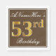 Den här enkla och elegant pappra napkin-designen innehåller ett meddelande som "ANamehär's 53:e födelsedag" (med "53:e" färgen faux guld) i en brun färgad fyrkantig yta med en enkel gräns-kontur. Namn är i en text som liknar en text med en vit färgad och kan vara personlig. Napkins som dessa kan kanske användas i en födelsedagsfest till någon som firar sin femtiotredje födelsedag. [~Z0000139]