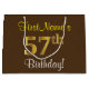 Den här enkla presentsäcksdesignen i eleganten innehåller ett personlig som "FirstName's 57:e födelsedagen!" (med "57:e" som har ett utseende som liknar guld och som liknar utseende) på en brunt färgad. Namn är i skriptliknande gult-färgad och kan anpassas. En sådan här personlig-födelsedagspressning skulle kanske kunna användas när en present eller gåva till någon som firar sin femtiosjunde födelsedag är ge. [~Z0000262]