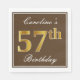 Den här enkla och elegant pappra napkin-designen innehåller ett meddelande som "Caroline's 57:e födelsedagen" (med "57:e" som har en ytliknande guld-färg) inom en fyrkantig yta med brun färgad med en enkel gräns-kontur. Namn är i en text som liknar en text med en vit färgad och kan vara personlig. Napkins som dessa kan kanske användas i en födelsedagsfest till någon som firar sin femtiosjunde födelsedag. [~Z0000139]