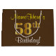 Den här enkla presentsäcksdesignen i eleganten innehåller ett personlig som "Namehere's 58 Birthday!" (med "58:e" som har ett utseende som liknar guld i utseende) på en brun färgad. Namn är i skriptliknande gult-färgad och kan vara personlig. En sådan här personlig-födelsedagspressning skulle kanske kunna användas när en present eller gåva till någon som firar sin femtioåttonde födelsedag är ge. [~Z0000262]