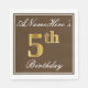 Den här enkla och elegant pappra napkin-designen innehåller ett meddelande som "ANamehere's 5th Birthday" (med "5th" som har en ytliknande guld-färg) inom en fyrkantig yta med brun färgad med en enkel gräns-kontur. Namn är i en text som liknar en text med en vit färgad och kan vara personlig. Napkins som dessa kan kanske användas i en födelsedagsfest till någon som firar sin femte födelsedag. [~Z0000139]