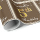 Den här enkla och eleganterna pappra designen innehåller ett personlig som "Namehär's 5th Birthday" (med "5th" som har ett utseende som liknar guld i utseende) i en brun färgad fyrkantig yta med en enkel gräns-kontur. Namn är i en elegant som är skript som liknar den vita färgaden och kan vara personlig. Att packa pappert som detta kan kanske användas när man fyller på födelsedagskalkyl för någon som firar sin femte födelsedag. [~Z0000223]