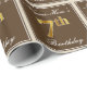 Denna enkla och eleganterna pappra utformning har ett personlig som "Namn-här’s 7:e Birthday" (där "7:e" har ett utseende som påminner om guld i utseende) i en brun färgad med en enkel gräns kontur. Namn är i en elegant som är skript som liknar den vita färgaden och kan vara personlig. Att packa pappert som detta kan kanske användas när man fyller på födelsedagskalkyl för någon som firar sin sjunde födelsedag. [~Z0000223]