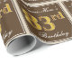 Denna enkla och eleganterna pappra utformning har ett meddelande om personlig som "Namn-här's 83:e födelsedag" (med "83:e" som har ett utseende som liknar guld i utseende) inom en fyrkantig yta med bruna färgader med en enkel gräns-kontur. Namn är i en elegant som är skript som liknar den vita färgaden och kan anpassas. Att packa pappert som detta skulle kanske kunna användas när man fyller på födelsedagskalkerna för någon som firar sin åttio tredje födelsedag. [~Z0000223]