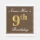 Den här enkla och elegant pappra napkin-designen innehåller ett meddelande som "Namn-här’s 9th Birthday" (där "9th" har en ytliknande guld-färg) inom en fyrkantig yta med brun färgad med en enkel gräns-kontur. Namn är i en text som liknar en text med en vit färgad och kan vara personlig. Napkins som dessa kan kanske användas i en födelsedagsfest till någon som firar sin nionde födelsedag. [~Z0000139]