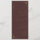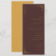 This elegant wedding menu features a sophisticated design with a deep brown background and gold accents, creating a luxurious feel. The layout is clean and symmetrical, with sections for Starters, Salad, Main Course, and Dessert clearly defined by bold, uppercase serif fonts. Decorative golden lines add an Asian-inspired touch to the overall aesthetic. The typography combines cursive headings with readable serif body text, enhancing both style and clarity. Perfect for adding a refined touch to your special day, this menu exudes understated elegance and sophistication.