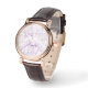 Discover the perfect harmony of classic tradition and modern art. This elegant women's watch features a rich brown leather strap and a sophisticated rose gold-tone case, beautifully contrasted by a vibrant purple floral line art design. The intricate illustration adds a touch of creative mystery to a timeless accessory. Personalize the dial with a name to create a meaningful gift for a loved one or a unique signature piece for yourself. A stunning choice for those who appreciate handmade aesthetics and sophisticated style.