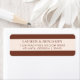 These return address labels feature a sophisticated and minimalist design with a balanced horizontal layout. The color palette includes rich dark brown accents framing a soft beige central section, creating an elegant contrast that enhances readability. The classic serif font adds a touch of formality, making these labels perfect for official correspondence or special occasions. Customizable fields allow for personalization, ensuring they suit any need while maintaining a professional appearance.