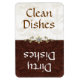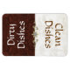 Praktisk och snyggt ren/smutsig maskmagnet i en brun dammliknande form i ena änden och en elfenbensdammliknande mönster i den andra änden av magneten. Bilder med en guld-nyans dekorerar magnetens mitten och bruna och vita textläsningar, Rena fläckar och Smutta fläckar på andra sidan. Underbar liten presentidé för alla.