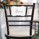 Klassiskt understatement svart och vit bröllopssköld med en modern touch med det eleganta skrivsättet av ordet "Brudgum" och en svart kant. Perfekt för brudgummens stol eller andra speciella arrangemang som skylt på förberedelserummet eller i limousinen.