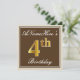 Elegant, Brun, Faux Guld 4e födelsedagen + Namn Inbjudningar