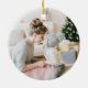 Elegant Brun Gingham Rutig Tall Jul Keramisk Juldekoration med foto - Skicka en speciell juldekoration med ditt familjenamn, år och foto med denna eleganta och moderna cottagecore stämning julgran gingham juldekoration. Med brun choklad mocha-ruta och elegant serif-teckensnitt. All text är redigerbar.