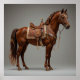 Prydd med intrikat utformad sadel och betsel, som visar lyxiga detaljer och hantverkskvalitet. Perfekt poserad i en studio, som framhäver equestrian elegans och raffinerad konstnärlighet.