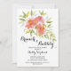 Vackra rosa och röda akvarellblommor och elegant grönska framhäver dessa brunch- och bubbelbröllopsinbjudningar. MATCHANDE artiklar i vår butik.