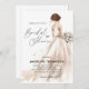 Fånga det som är så elegant och elegant med den här exekutiva inbjudningskort för möhippan. Bild är en känslig brud som är förbluffad i bröllop, som har en blombukett, och som utstrålar sin skönhet med varje steg. Inbjudan i sig själv är sofistikerad, med smakfull design av inslag och förfinad typografi.