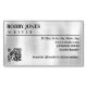 En magnet för affärskort av elegant med en faux borstad silver-folieramera, svarttext och en QR-.