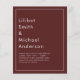 ⭐ OBS! Detta är ett pappert alternativ med låg budget. SATIN är den tjockare avsluta här, matt är som papper. Kuvert ingår INTE. Om du vill ha fler traditionella inbjudningar kan du visa pappra vikter och storlekar i den bifogade samlingen eller överföra designen via verktyg på produktsidan till "inbjudan". ⭐ Deep red burgundy monokrome bröllop-objekt med trending typography stil och gott om template fält för att skapa din egen anpassningsbar unika design. Om du vill ha mer hjälp kan du läsa Zazzles FREE LIVE DESIGNER eller användan TRANSFER verktyg på sidan. ⭐ Visa den bifogade samlingen och "ytterligare produkter" om du vill visa fullt-sviten som innehåller detta designtema eller färg. Detta kan omfatta bröllop och inbjudningskort för möhippa, inbjudningskort för repetitionsmiddagar, inbjudningskort för brudmatsalar och för att spara datum, osas, favoritmärken, klistermärken och mycket annat. Lämpligt för vår, sommar, höst, höst, höst, vinterbröllop, inomhus eller utomhus, berg, sjö, ladugård, landskap, slott, trädgård, trädgård. Ton underbara utformningar och alternativ för alla budgetar. ⭐ Malldesign ©LeahG Grundare av LowBudgetWeddingNetwork® För planeringsråd från bröllop, besök oss på www.weddingdesignchic.com. Här kommer du att få information om hur du ska planera din perfekt med lågbudgetBride bröllop, skriva ut kostnadsfria checklistor för bröllop och ladda ned en kostnadsfri handbok för utskrift av bröllop.