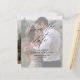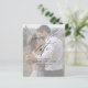 Ett enkelt och chic fotobrollop spara datum-kort med eleganta script kalligrafi detaljer och klassisk text overlay på ett porträtt vertikalt foto på framsidan. Baksidan har ett foto som sträcker sig ända ut till kanterna. Klicka på redigeringsknappen för att anpassa denna design.