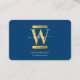 Ett vackert marinblått och guld-format med ett monogram från elegant guld. Denna moderna utformning som förenar blått och guld färg omfattar både modern och manusatypgrafi. Ett enkelt och professionell sätt att presentera ditt företag. Social-medieikoner som ingår i affärskortets utformning för använda. Anpassa dina uppgifter för att skapa ditt eget unika affärskort.