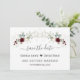 Modern design med vattenfärg burgunder blommor, luftiga blad, eukalyptus, falska gyllene blad, modern "spara datum" kalligrafi; på baksidan initialer och blommig arrangemang. Använd Anpassa verktyg för att lägga till din information. Matchande föremål finns i min Burgunder Blommig Luftig Grönska Samling.
