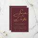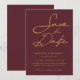 Elegant Burgunder Guld Modern Typografi Bröllop Spara Datumet